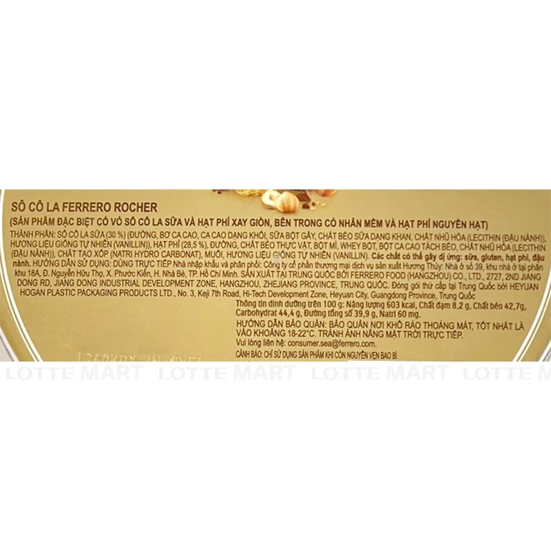 Socola Ferrero trứ danh đến từ Ý, được tuyển chọn từ những loại nguyên liệu cao cấp nhất, trải qua quá trình nhào nặn và chế biến vô cùng kì công đã tạo nên những viên socola thượng hạng mà mỗi khi nhắc đến ai cũng phải dành những lời khen xuýt xoa. Một trong những điều đặc trưng làm lên thương hiệu Chocolate Ferrero Rocher chính là ở hương vị khó quên của mình trong đó có sản phẩm Socola Ferrero Rocher . Về hương: ngay khi bạn mở lớp giấy bạc màu vàng sanh chảnh bọc gói những viên socola ra, bạn sẽ bị thu hút bởi hương socola sữa ngọt ngào cùng vị ngậy ngậy bùi bùi của hạt phỉ ở lớp ngoài cùng. Về vị: khi nếm thử miếng socola đầu tiên, bạn nên cắn đến tận nhân để cảm nhận được hết những lớp bánh giòn và thơm ngây ngất của viên socola. Lớp đầu tiên là lớp socola sữa cùng vụn hạt phỉ rang nghiền nhỏ thơm bùi, lớp thứ hai là bánh xốp, lớp thứ ba lớp thứ ba có kem socola bao phủ lấy hạt phỉ béo ngậy Chắc chắn rằng với sự kết hợp hòa quyện hài hòa những hương vị ngọt đắng bùi béo của socola, của hạt phỉ, của bánh xốp,.. sẽ khiến các bạn không thể nào quên. Xuất xứ: Ý.