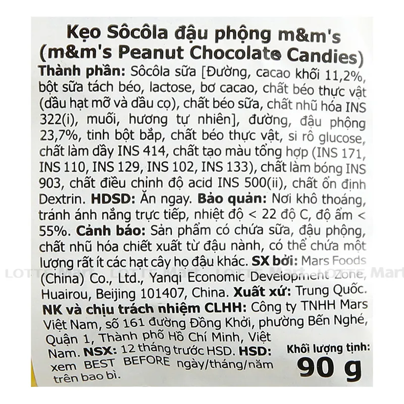 Kẹo Socola Sữa M&M's với hạt đậu phộng béo béo, bùi bùi đem đến cảm giác thích thú cho bạn khi dùng. Sản phẩm được chế biến từ nguồn nguyên liệu có chất lượng tốt, sản xuất trên dây chuyền hiện đại.