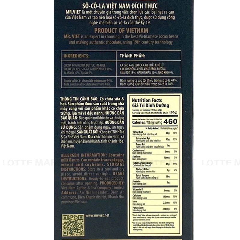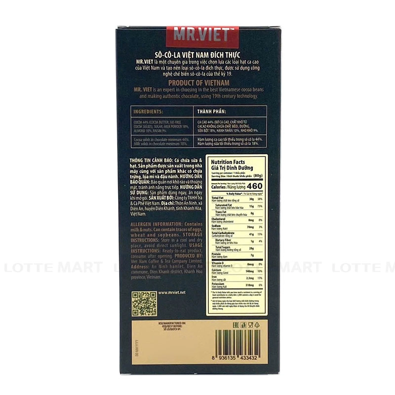 Socola Sữa MR.VIET Vị Hạnh Nhân Và Nho Khô 80G