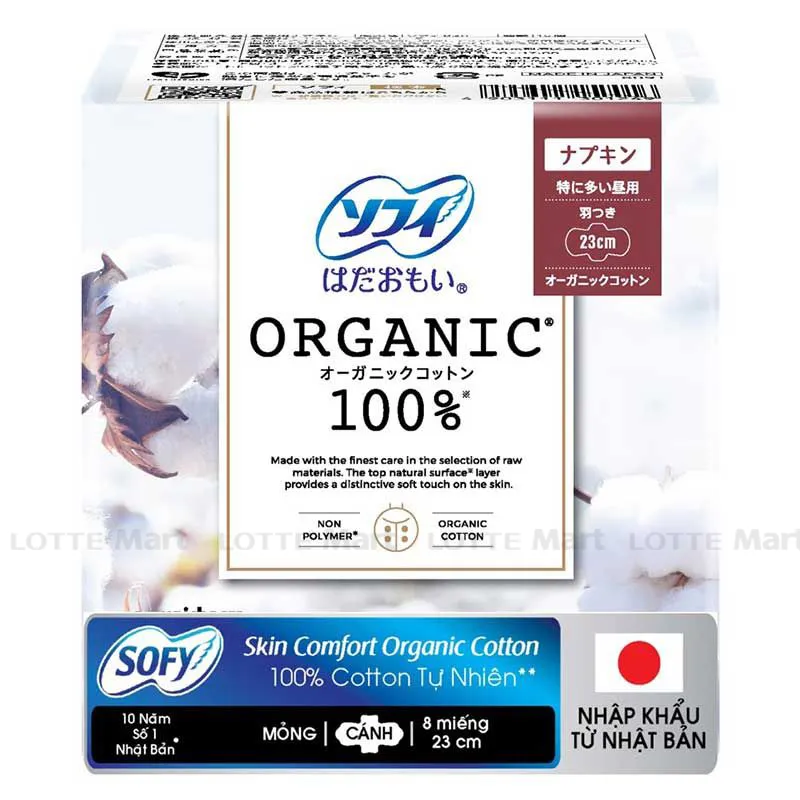 Băng Vệ Sinh Sofy Organic Cotton Siêu Mỏng Cánh 23cm Gói 8 Miếng