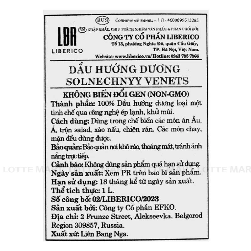 - Dầu Hướng Dương Solnechnyy Venets là sản phẩm dầu ăn tinh khiết, được chiết xuất từ 100% hạt hướng dương không biến đổi gen qua công nghệ ép lạnh hiện đại, chứa nguồn vitamin E dồi dào rất tốt cho sức khỏe.