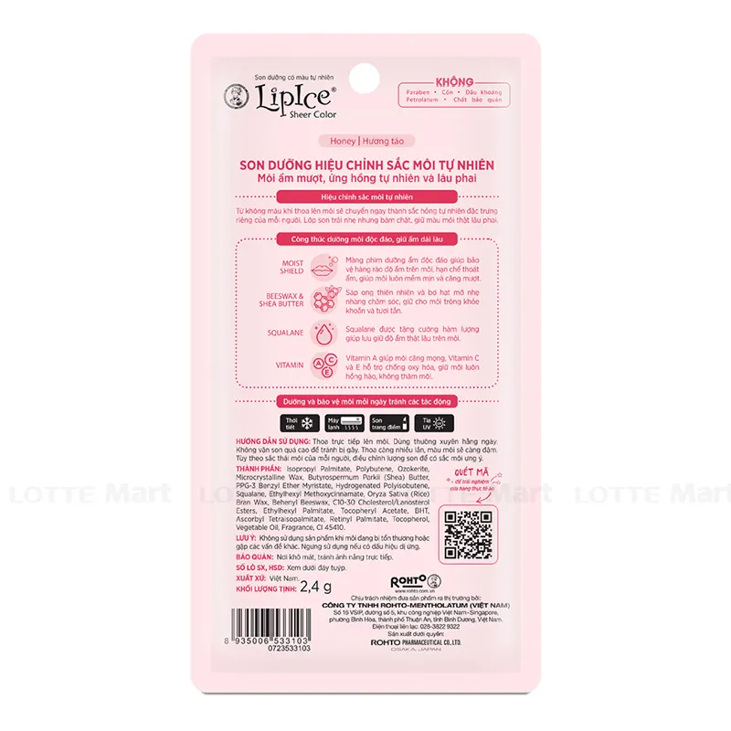 - Squalane: tăng cường hàm lượng giúp lưu giữ độ ẩm thật lâu trên môi.