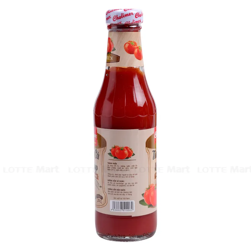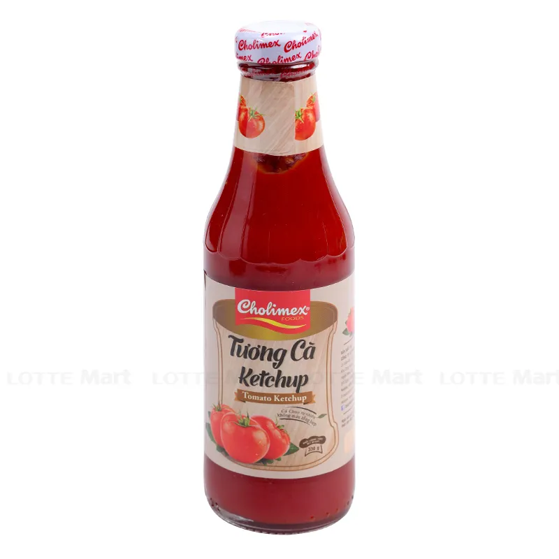 Cho món ăn thêm hương vị đậm đà, tương cà Cholimex có thành phần an toàn cho người dùng, vị chua tự nhiên của cà, cho món ăn thêm thơm ngon, đậm đà, kích thích vị giác. Thành phần: Cà chua, củ hành, đường, muối ăn, dấm, nước, bột bắp. Hướng dẫn sử dụng: Dùng trực tiếp. Bảo quản ở nơi khô thoáng, tránh ánh nắng trực tiếp. Đậy kín nắp sau khi sử dụng.