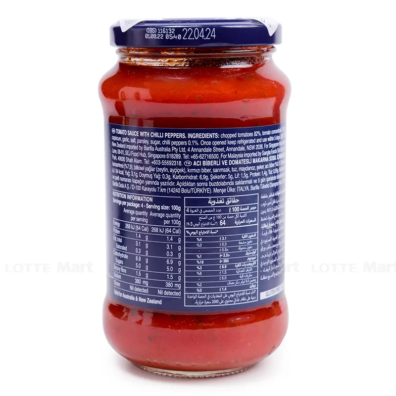 Sốt ớt Barilla có nguyên liệu chính là những quả ớt tươi ngon, cùng cà chua tạo nên một hương vị cay chua đặc trưng. Sản phẩm được đóng gói trong lọ thủy tinh đẹp mắt, dễ sử dụng và bảo quản. Sản phẩm được chế biến theo qui trình khép kín hiện đại, đảm bảo vệ sinh an toàn thực phẩm, đến từ đất nước Ý. Màu sắc bát mắt, không chứa chất phụ gia gây hại. Bạn có thể dùng sốt ớt để trộn ăn với mì mà không cần thêm gia vị. Sốt Arrabbiata Barilla được chế biến theo quy trình công nghệ chế biến đặc biệt từ Ý. Theo đó, sản phẩm không chỉ mang lại hương vị và màu sắc bắt mắt cho món ăn mà còn đảm bảo an toàn cho người sử dụng.