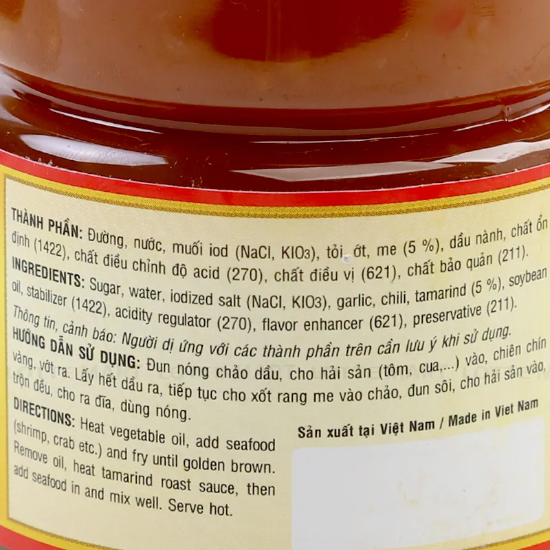 - Ớt, tỏi, me, Đường, muối ăn, dầu ăn, bột bắp.