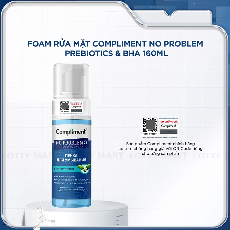 Foam Rửa Mặt Compliment No Problem Prebiotics và BHA là sản phẩm thuộc thương hiệu Compliment của Tập đoàn TIMEX - một trong những doanh nghiệp sản xuất mỹ phẩm lớn và nổi tiếng nhất nước Nga được thành lập từ năm 1994.