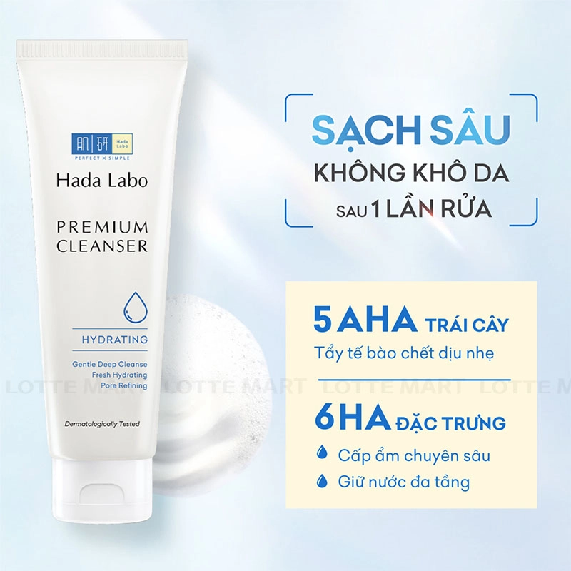 Sữa Rửa Mặt Dưỡng Ẩm Cao Cấp Hada Labo Premium Cleanser Hydrating là sản phẩm sữa rửa mặt tạo bọt mịn, nhẹ nhàng làm sạch sâu bụi bẩn và bã nhờn, giúp da sạch thoáng.