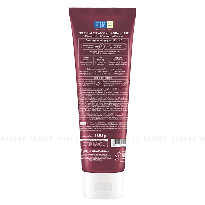 Sữa Rửa Mặt Hada Labo Premium Cleanser Aging Care Hỗ Trợ Ngăn Ngừa Lão Hóa Tuýp 100G