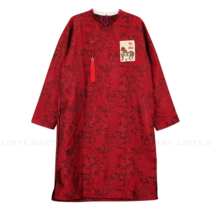 - Thiết kế cổ đứng cách điệu với phần khoét chữ V nhẹ, đường may gọn gàng. Bề mặt vải có hoa văn dệt chìm trang nhã và vẫn có độ nổi bật khi lên hình.