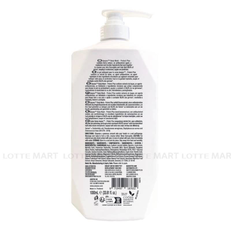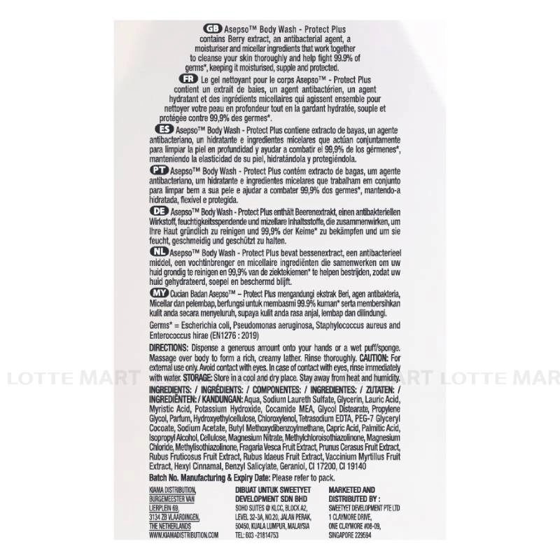- Sữa Tắm Asepso Kháng Khuẩn Sạch Sâu Dưỡng Ẩm Quả Mọng giúp làm sạch, ngăn ngừa đến 99,9% vi khuẩn nhờ công nghệ Micellar.