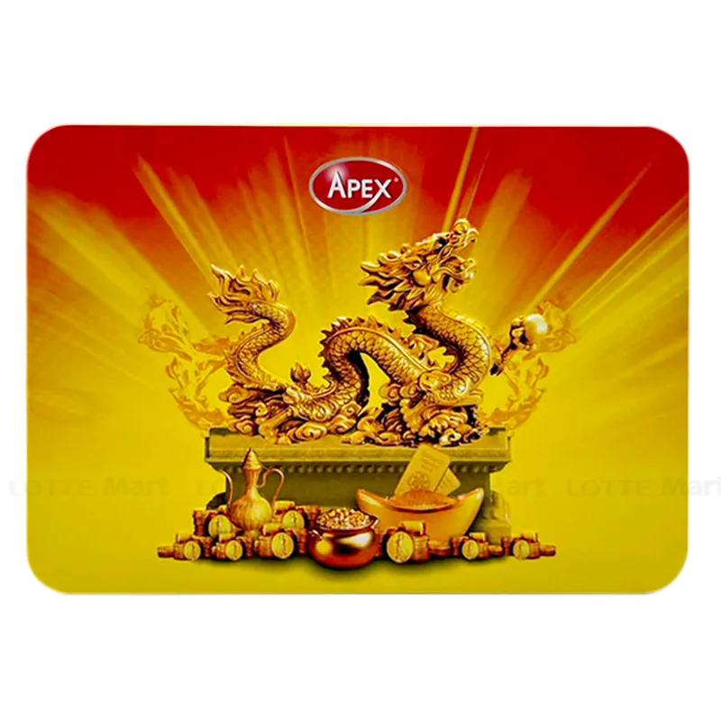 - Ngoài ra, Bánh Quy Apex Hỗn Hợp Hộp Chữ Nhật Rồng Vàng với thiết kế hộp thiếc sang trọng sẽ là món quà tuyệt vời trong dịp lễ tết cho gia đình, bạn bè và người thân.