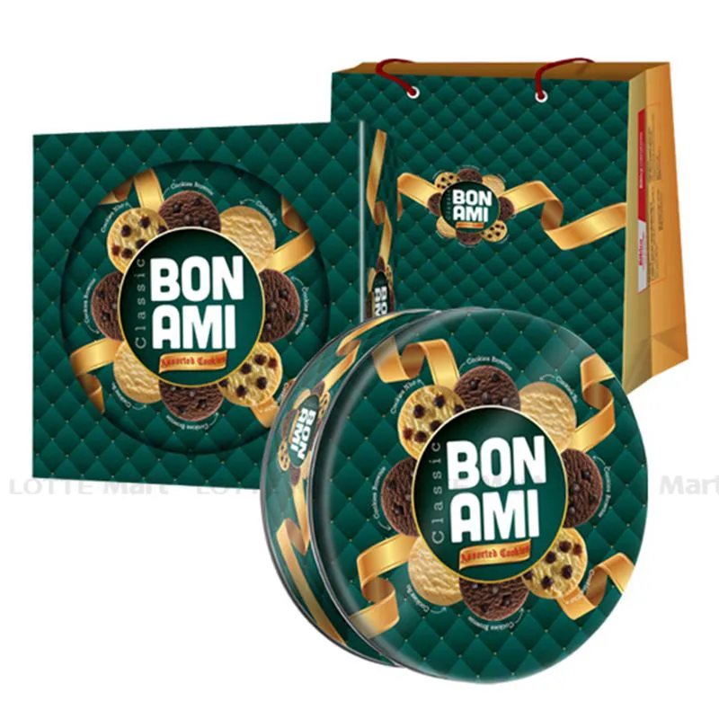 Bánh Quy Bon Ami Classic Hỗn Hợp 304G nhiều loại bánh quy giòn tan thơm ngon cho bạn lựa chọn. Hương bánh quy thơm mùi sữa hòa quyện với nhiều dạng bánh quy bơ, bánh quy cacao brownie, bánh quy nho cho bạn nhiều trải nghiệm, bánh quy vị ngọt vừa phải, không quá ngấy và phù hợp với khẩu vị của đa số mọi người. Đặc điểm nổi bật: hộp bánh được thiết kế tinh tế, có thể dùng với nhiều mục đích như tặng quà, cúng lễ, sum họp gia đình,...Hộp bánh gồm nhiều loại bánh: bánh quy bơ thơm béo, bánh quy brownie giòn tan thoảng vị đăng đắng của cacao, bánh quy nho là sự kết hợp giữa bánh quy béo ngậy cùng nho khô thơm lừng tạo nên hương vị bánh gây thương nhớ. Thành phần: Bột mì, đường, chất béo thực vật (dầu olein tinh luyện), 11% bơ lạt, sữa bột, muối, chất tạo xốp (E500(ii), E503(ii)), hương tổng hợp (sữa, vani). Hướng dẫn sử dụng: Ăn trực tiếp hoặc dùng kèm với trà và sữa tươi. Quy cách sản phẩm: Hộp 48 gói. Hướng dẫn bảo quản: bảo quản nơi khô ráo, thoáng mát, tránh ánh nắng trực tiếp. Xuất xứ: Việt Nam.