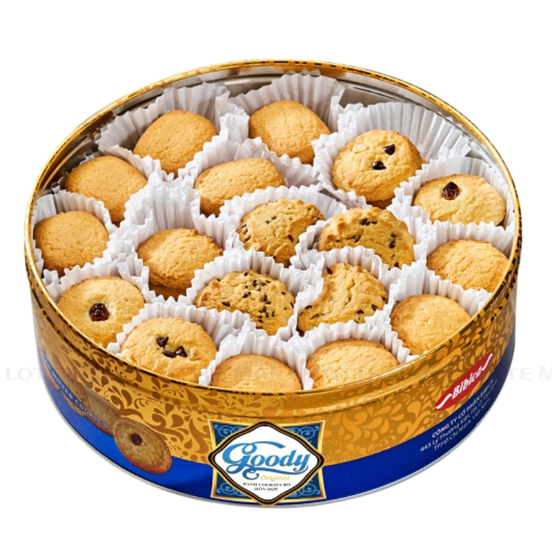 Bánh Goody là món quà tuyệt vời dành cho mọi dịp đặc biệt, đặc biệt là Tết Nguyên Đán. Với thiết kế hộp thiếc sang trọng và tinh tế, bánh mang đến hương vị thơm ngon từ sự kết hợp hoàn hảo giữa bơ, sữa và các nguyên liệu chất lượng như hạt socola, hạt điều và bánh quy trà xanh. Sản phẩm không chỉ mang lại sự ngọt ngào, mà còn cung cấp năng lượng dồi dào và đầy đủ dưỡng chất.