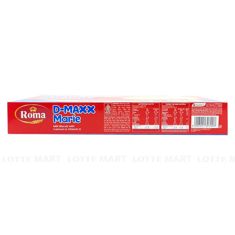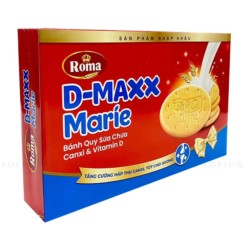 Bánh Quy Sữa Roma D-MAXX Marie là dòng bánh được tăng cường thêm Canxi và Vitamin D, hỗ trợ cơ thể hấp thụ canxi tốt hơn.