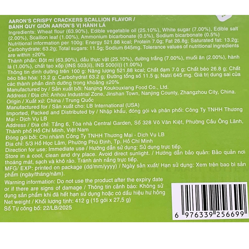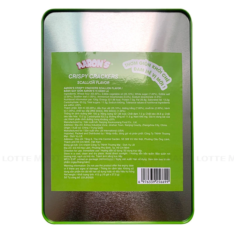 - Bánh Quy Aaron's Vị Hành Lá mang đến hương vị độc đáo của hành lá.
