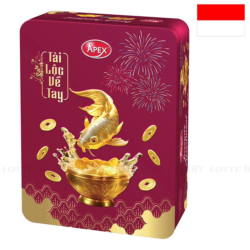 - Bánh Quy Apex Hỗn Hợp Hình Cá Chép Đỏ Hộp Chữ Nhật 422G là sự kết hợp hấp dẫn của 5 loại: bánh quy bơ Golden, bánh quy socola, bánh quy Kruster đậu phộng, bánh quy dừa, bánh quy Kruster chanh mang đến trải nghiệm giòn xốp, thơm ngon trong từng miếng bánh.