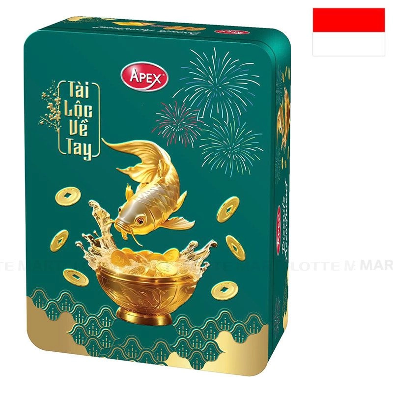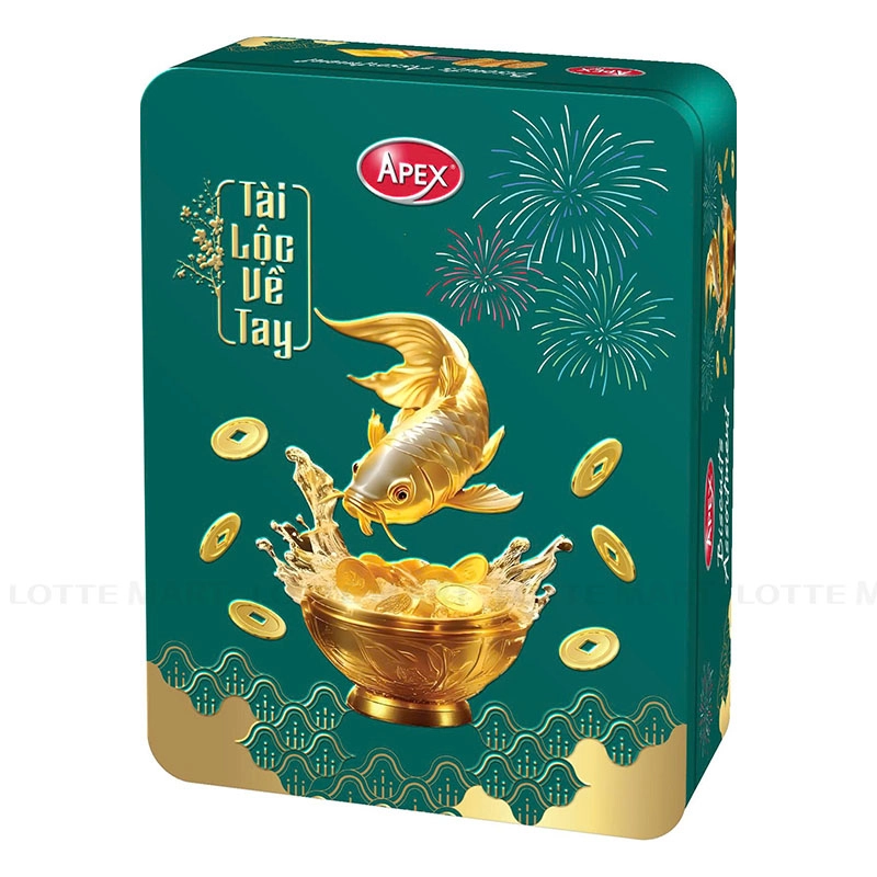 - Bánh Quy Apex Hỗn Hợp Hình Cá Chép Xanh Hộp Chữ Nhật là sự kết hợp hấp dẫn của 5 loại: bánh quy bơ Golden, bánh quy socola, bánh quy Kruster đậu phộng, bánh quy dừa, bánh quy Kruster chanh mang đến trải nghiệm giòn xốp, thơm ngon trong từng miếng bánh.