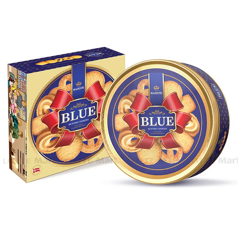 Bánh Quy Majestic Blue Hộp 625g là dòng bánh quy bơ cao cấp mang phong cách hoàng gia châu Âu, được sản xuất bởi Garuda Food – tập đoàn lớn nhất Indonesia. Bánh có hương vị bơ sữa thơm ngon, hình thức đẹp, sang trọng, thích hợp là món quà thương yêu cho gia đình, bạn bè, đồng nghiệp và đối tác, mang đến cho mọi người không khí đầm ấm, hạnh phúc và ngọt ngào trong những bữa tiệc, liên hoan… Đặc điểm nổi bật: Bánh quy hỗn hợp, hương vị xốp giòn, thơm vị bơ sữa và ngọt dịu… Có nhiều loại khác nhau trong cùng 1 hộp bánh: bánh phủ đường hạt, bánh vị socola… tạo nên sự phá cách trong các dòng bánh quy truyền thống. Vỏ hộp thiếc dày dặn, chắc chắn, thiết kế thẩm mĩ và sang trọng, phù hợp làm món quà dành tặng gia đình, bạn bè, người thân. Sản phẩm có hương vị ngon ngọt, phù hợp cho cả trẻ nhỏ và người lớn. Thành phần: Bột lúa mì, bơ, đường, dừa, trứng, nho, sữa bột, muối, bột nở,vani...Hướng dẫn sử dụng: Sử dụng ngay sau khi mở hộp để đảm bảo chất lượng tốt nhất, tránh để lâu không khí ảnh hưởng đến chất lượng bánh, làm bánh bị mềm ỉu, mất đi độ giòn xốp ngon miệng sẵn có. Phù hợp dùng kèm với các loại sữa, trà mạn – dùng trong những bữa ăn nhẹ, tiệc trà, liên hoan hay picnic dã ngoại… Hướng dẫn bảo quản: bảo quản nơi khô ráo, thoáng mát, tránh ánh nắng trực tiếp. Sản xuất tại: Việt Nam.