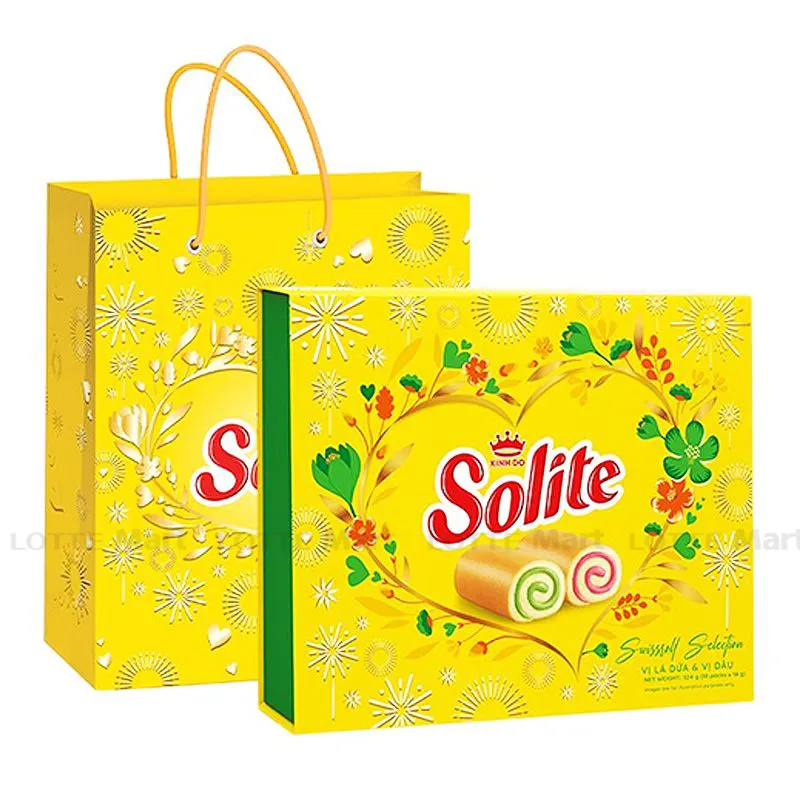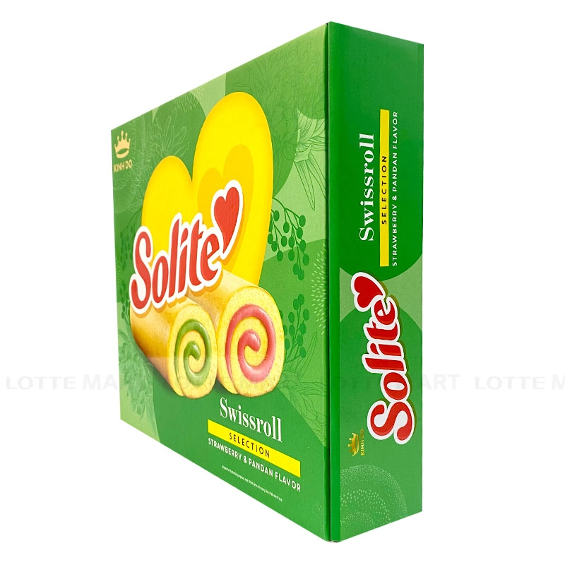 - Bánh Bông Lan Cuộn Solite Vị Lá Dứa Và Dâu với nguồn nguyên liệu trứng sữa tươi, lớp vỏ mềm mịn hòa quyện cùng lớp nhân kem đậm đà, mang lại hương vị tươi ngon trọn vẹn.