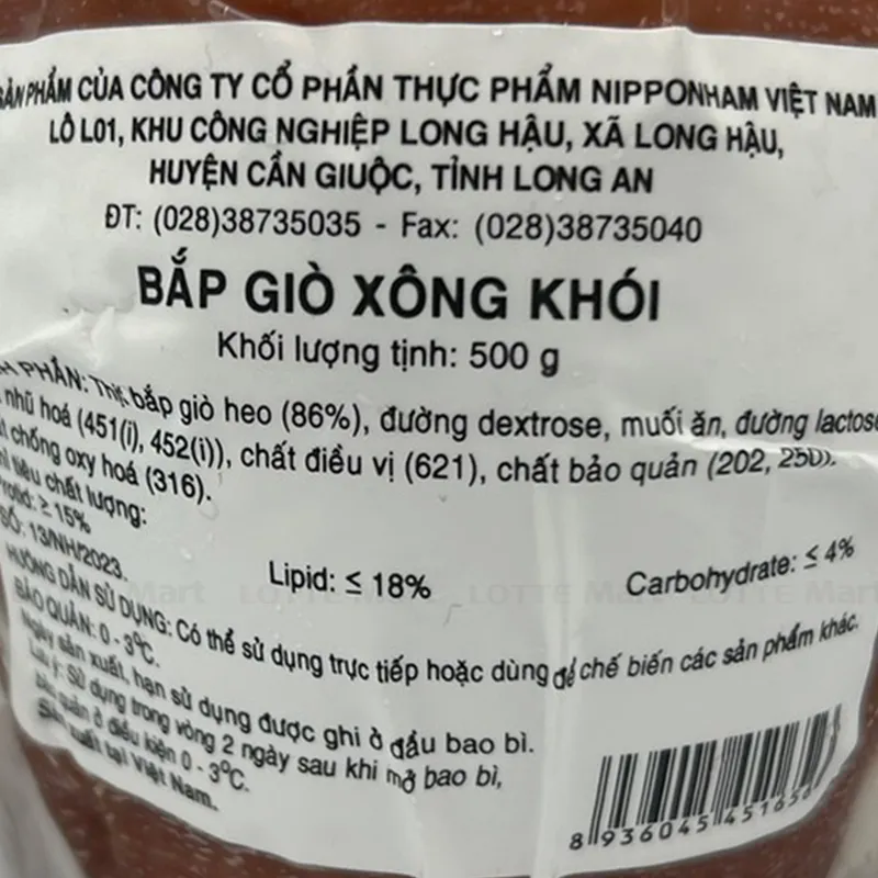 - Bắp Giò Xông Khói Nipponham Gói 500G được chế biến từ thành phần thịt heo rút xương tươi ngon, đảm bảo an toàn vệ sinh thức phẩm. Điểm đặc biệt của sản phẩm này chính là thịt cực dai giòn, mang lại sự cảm giác sần sật thú vị từng miếng. Vị thơm ngon và ngọt lịm của chân giò heo chắc chắn sẽ khiến bạn nghiền ngay từ lần đầu thưởng thức.