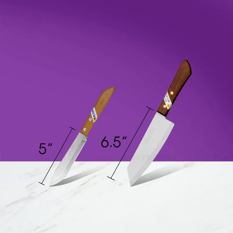 Bộ 2 Dao KIWI Đa Năng Cán Gỗ W2B là bộ dao đa năng sản xuất bởi thương hiệu KIWI, một thương hiệu nổi tiếng với nhiều năm kinh nghiệm trong lĩnh vực sản xuất dao bếp và dụng cụ nhà bếp chất lượng cao.