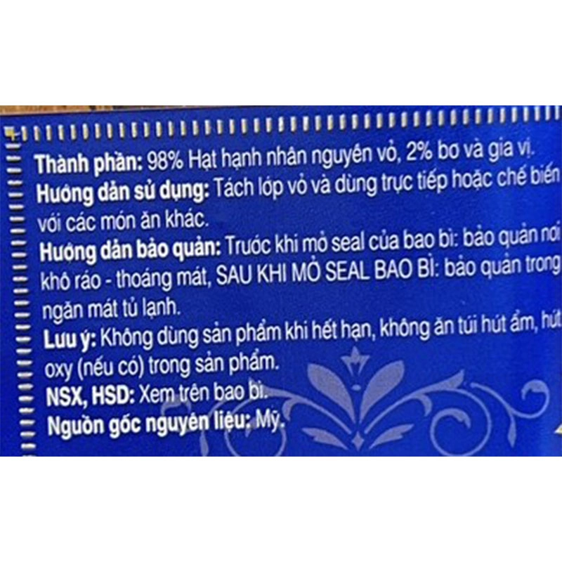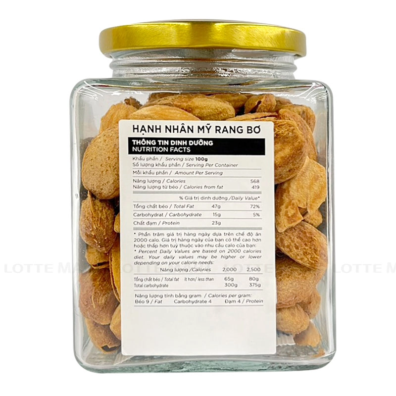 - 98% hạnh nhân nguyên vỏ, 2% bơ và gia vị.