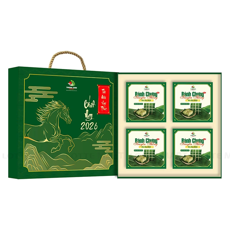 Hộp Quà Tết Bánh Chưng Xanh Trường Xuân Bà Ba Hội Nhân Mặn 4 Cái