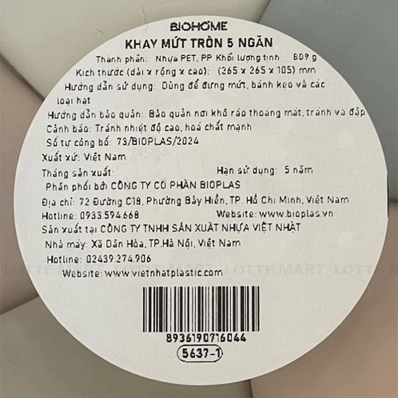 Hộp Mứt Tròn 5 Ngăn Biohome với thiết kế hình tròn tượng trưng cho sự viên mãn với 5 ngăn tách biệt, giúp bạn bày biện đa dạng các loại mứt và bánh kẹo một cách ngăn nắp, đẹp mắt trong ngày xuân đoàn viên.