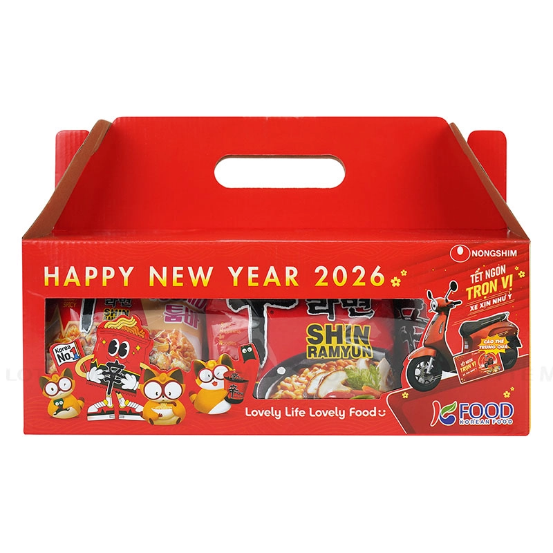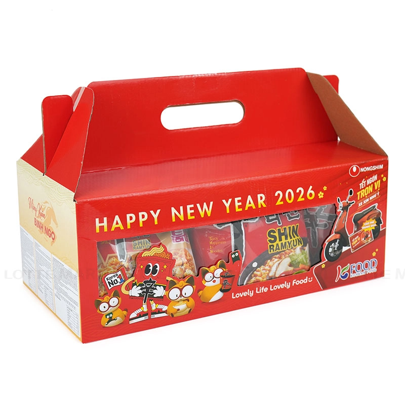 Hộp Quà Tết Mì Nongshim Shin Ramyun 2026 với phần vỏ hộp Tết 2026 đẹp mắt, chắc chắn, là món quà tinh tế và ấm áp dành tặng người thân, bạn bè.