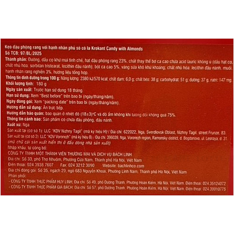 Kẹo Đậu Phộng Hạnh Nhân Krokant Phủ Socola 180G