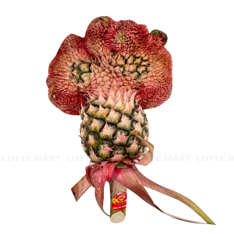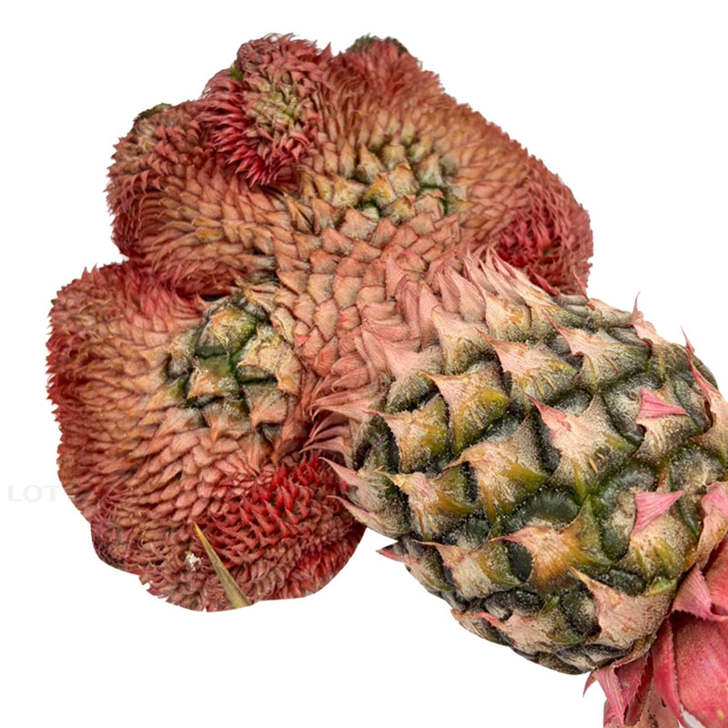 Khác với khóm thường, loại này có màu đỏ cam rực rỡ từ phần quả đến các chồi non, rất hợp để chưng bàn thờ tạo không khí Tết.