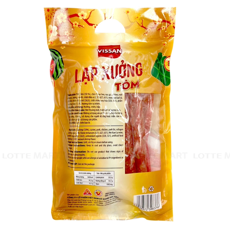 - Lạp Xưởng Tôm Vissan được sản xuất theo dây chuyền công nghệ hiện đại, đảm bảo các tiêu chuẩn vệ sinh thực phẩm. Quy trình sản xuất nghiêm ngặt giúp sản phẩm giữ được độ tươi ngon và đảm bảo an toàn cho sức khỏe người tiêu dùng.