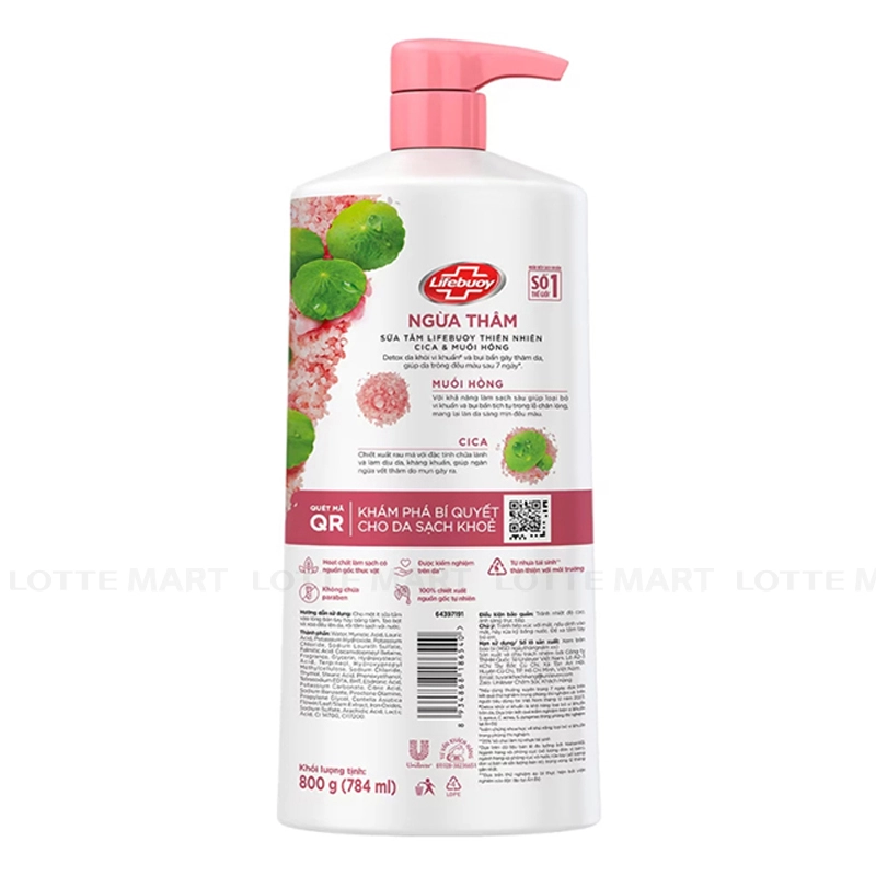 Sữa Tắm Lifebuoy Chiết Xuất Cica và Muối Hồng Ngừa Thâm Chai 800G