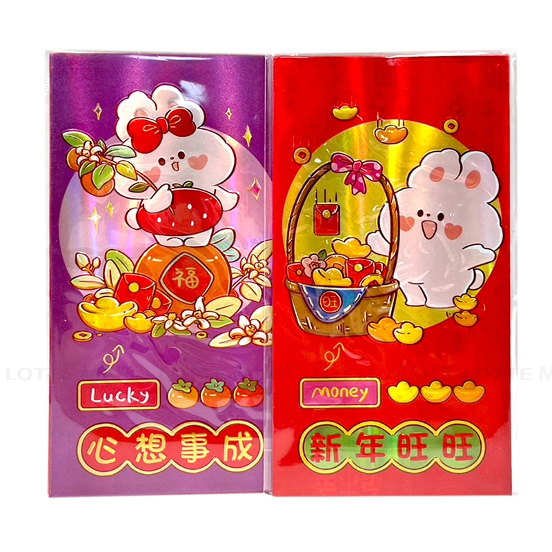 - Bao Lì Xì với những hình ảnh trang trí là các chú thỏ có các biểu cảm ngộ nghĩnh, vui tươi, đáng yêu.