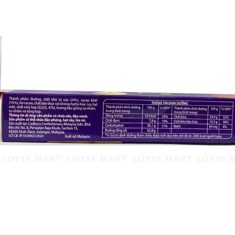 Socola Sữa Cadbury Dairy Milk là sản phẩm của Cadbury, thương hiệu socola nổi tiếng, giúp bù đắp năng lượng cho các hoạt động hàng ngày.