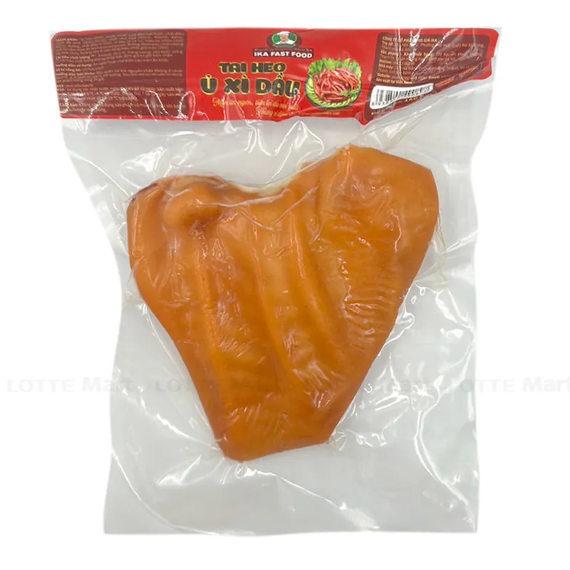 - Tai Heo Ủ Xì Dầu IKA Gói 160G có màu nâu cánh gián, mùi thơm hấp dẫn bởi xì dầu cùng các gia vị thảo mộc. Đặc biệt, Thịt tai heo mềm mọng, sụn giòn tan, hương vị đậm đà thấm đều gia vị, ăn kèm với cơm nóng, làm nộm, salad hay nhậu cùng rau thơm đều rất ngon.