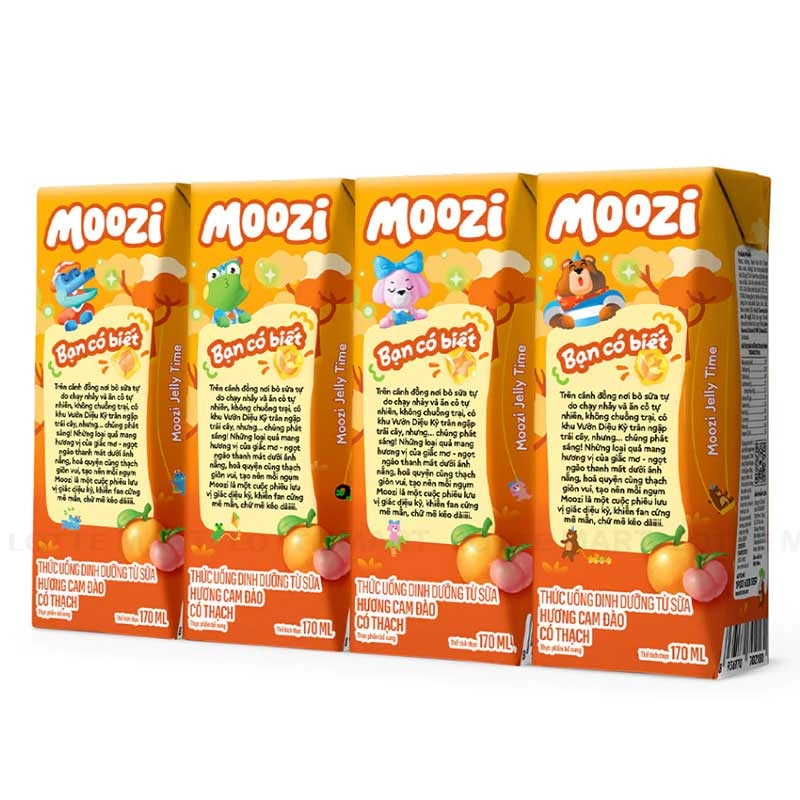 Lốc 4 Hộp Thức Uống Dinh Dưỡng Từ Sữa Moozi Hương Cam Đào Có Thạch 170ml