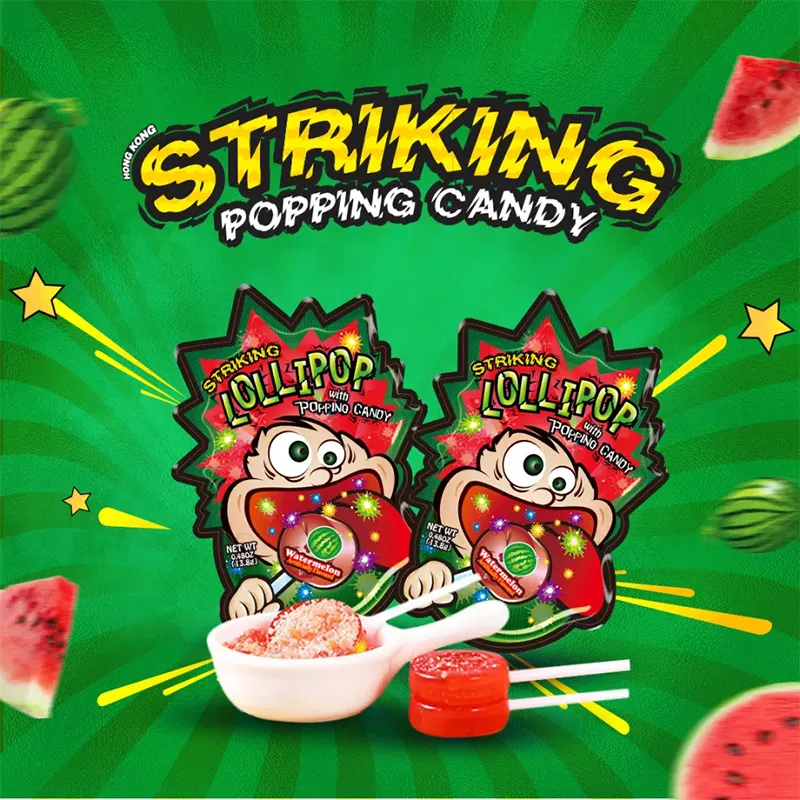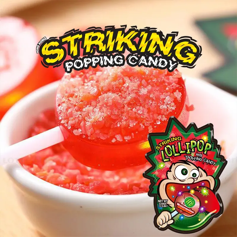 - Kẹo Mút Nổ Striking Hương Dưa Hấu được sản xuất theo tiêu chuẩn an toàn cho sức khỏe người sử dụng. Kẹo sẽ nổ lách tách khi ngậm trong miệng mang đến cảm giác vô cùng thú vị và mới lạ. Kẹo có vị sảng khoái cùng vị chua chua ngọt ngọt thơm ngon, độc đáo.