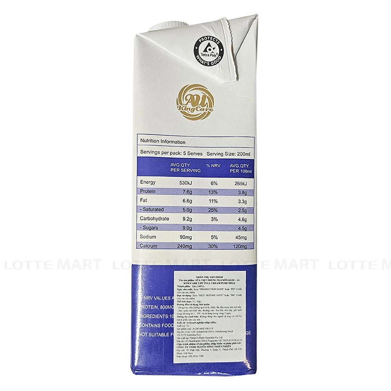 Sữa Tươi Tiệt Trùng AU Kingcare Nguyên Kem 3.5% 1L