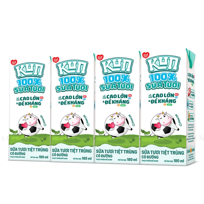 Sũa Tươi Tiệt Trùng Có Đường Lof Kun Lốc 4 Hộp 180ml