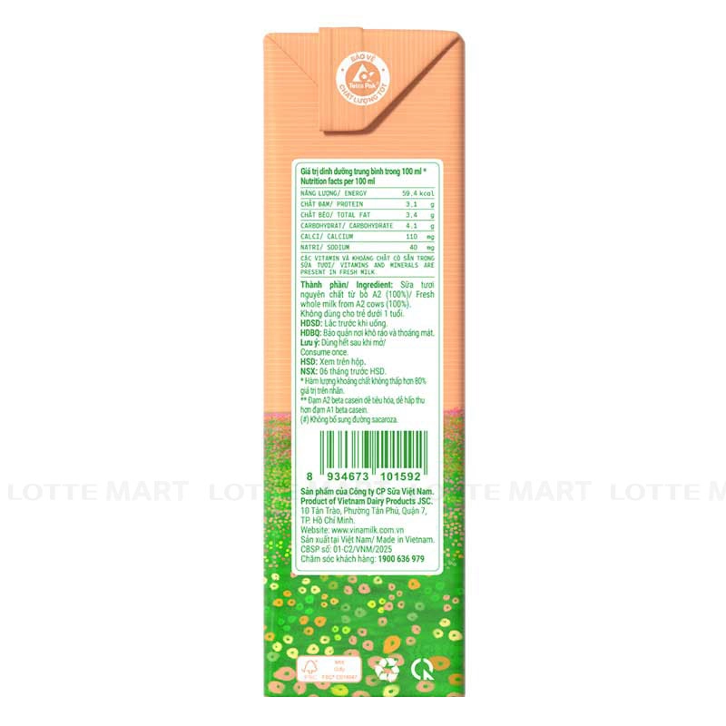- Sữa tươi nguyên chất từ bò A2 (100%).