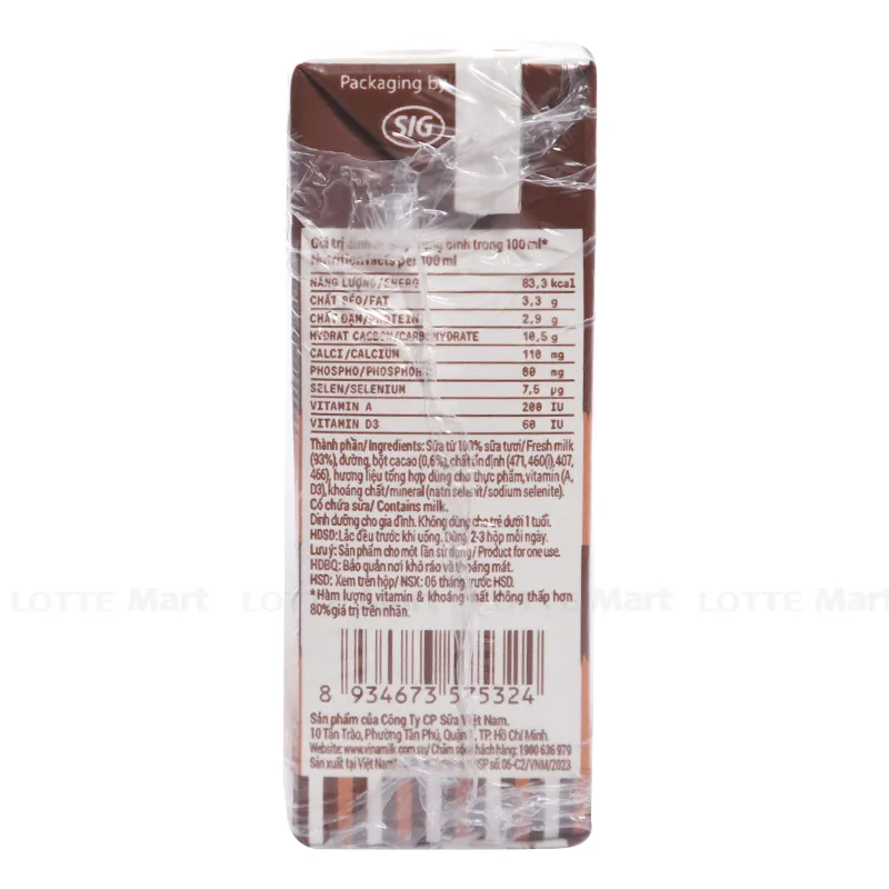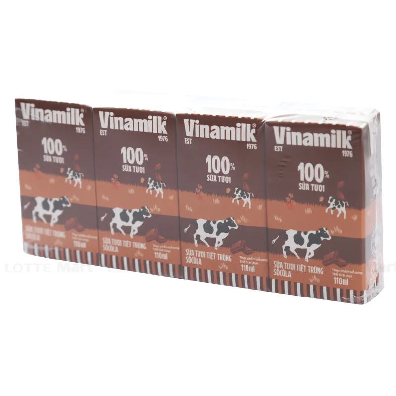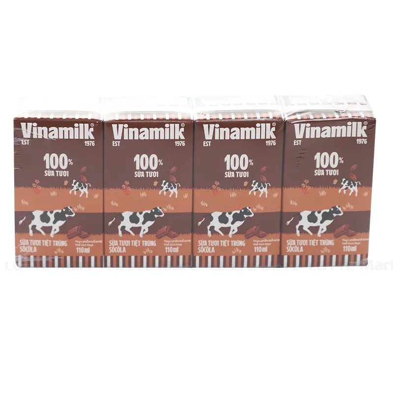 Sữa Tươi Tiệt Trùng Vinamilk 100% Hương Socola Lốc 4 Hộp 110ml