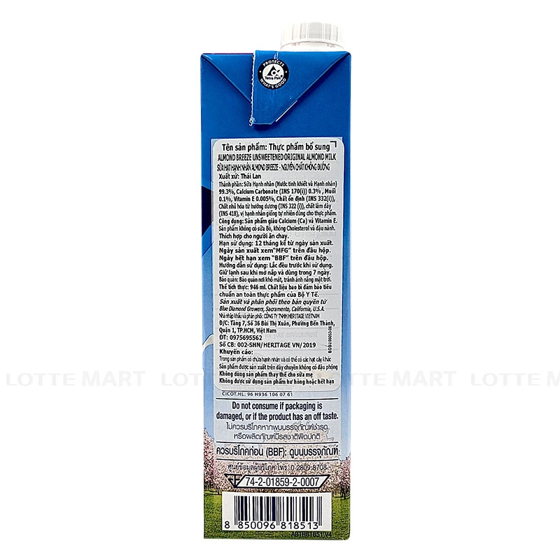 - Almond Breeze được đóng trong hộp giấy dung tích lớn với nắp vặn chắc chắn, dễ mở.