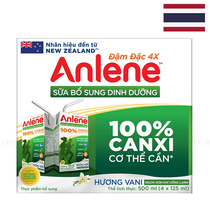 Đặc điểm nổi bật: Sữa dạng nước với hương vani thơm ngon, dễ uống. Sản phẩm có chứa hệ dưỡng chất tối ưu giúp hấp thụ những dưỡng chất không thể thiếu cho xương. Anlene Đậm đặc 4X với công thức cải tiến mới giúp xương bạn luôn chắc khỏe để tận hưởng cuộc sống năng động.