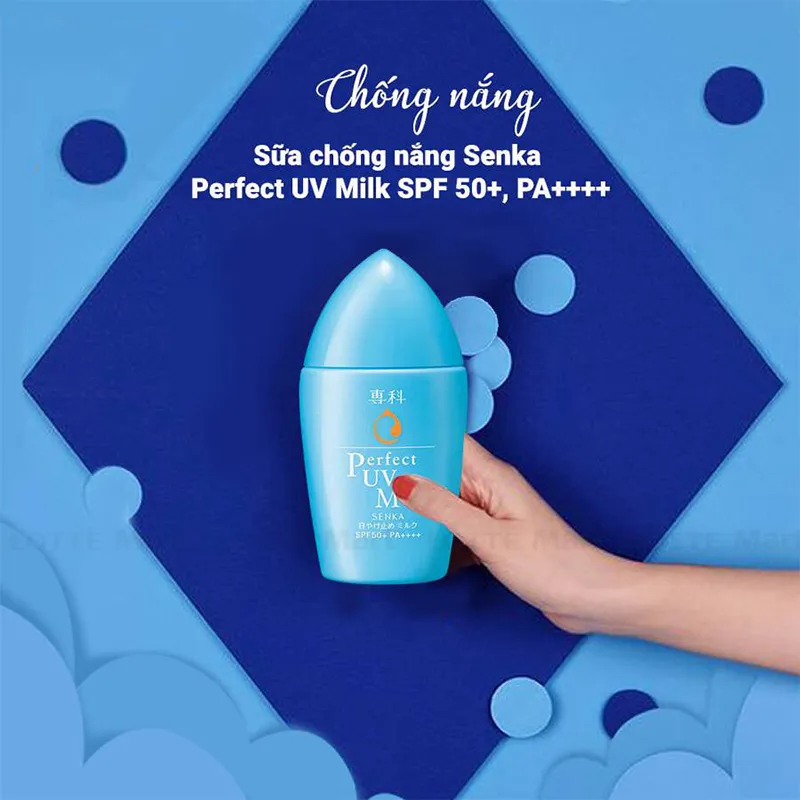 Sữa Chống Nắng Senka Kiềm Dầu Mịn Lì Cho Da Dầu Perfect UV Milk SPF50+ PA++++ mang lại cảm giác mịn mượt, giúp bảo vệ da, chống nắng với chỉ số chống tia UV vượt trội: SPF 50+, PA++++, cho bề mặt da luôn tươi sáng rạng rỡ.