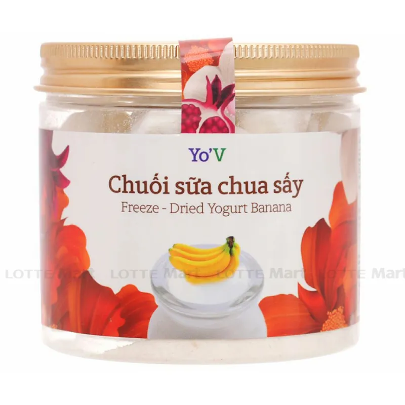 Sữa chua được sấy lạnh làm bốc hơi độ ẩm bằng cách sấy ở nhiệt độ (0 - 10 độ C) sau đó đem đi làm nguội. Sữa chua sấy vị chuối Yo'V hũ 60g thơm ngon, ăn hoài không ngán. Sữa chua sấy Yo'V chất lượng, với hương vị chuối chín thơm hảo hạng, thích hợp cho ăn vặt và làm quà.