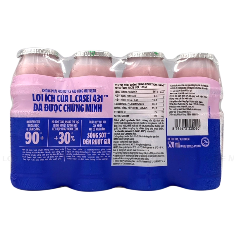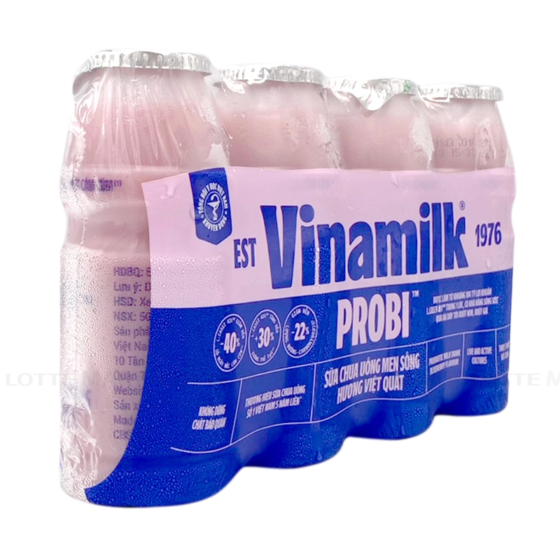 Sữa Chua Uống Vinamilk Probi Hương Việt Quấtbổ sung hàng tỷ lợi khuẩn L. Casei 431 trong 100 ml, giúp đường ruột khỏe mạnh, tăng cường đề kháng, hạn chế cảm cúm.