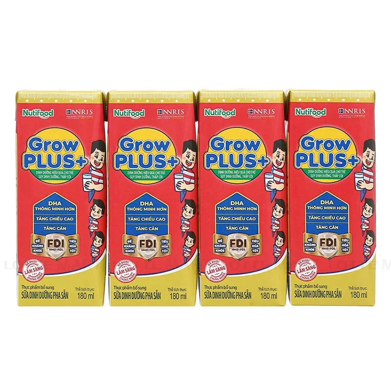 Sữa Bột Pha Sẵn Grow Plus+ Suy Dinh Dưỡng Hương Vani Lốc 4 Hộp 180ML