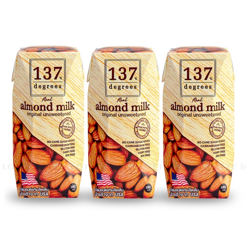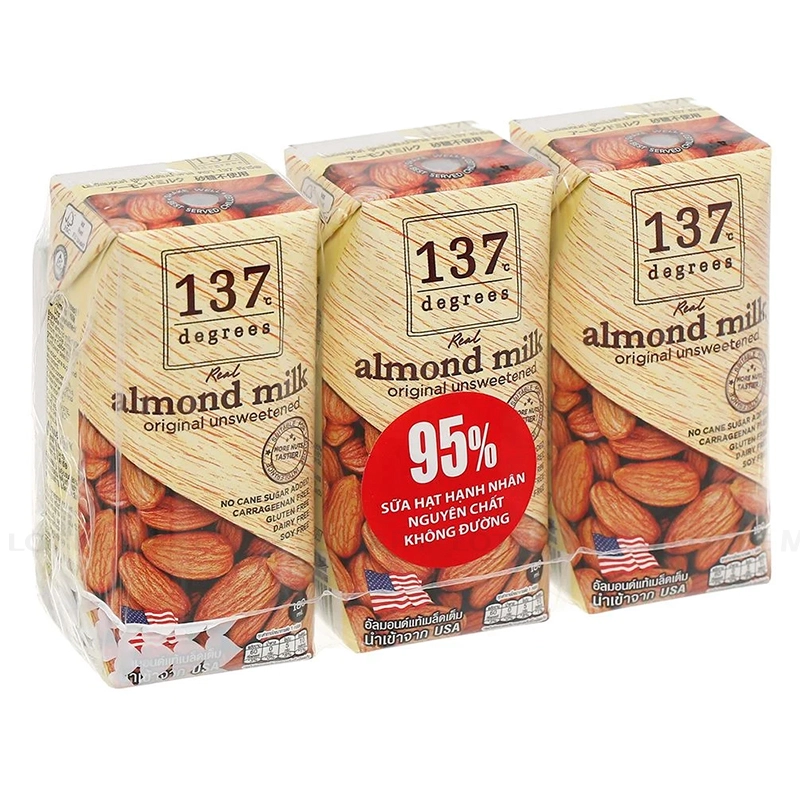 Sữa Hạt Hạnh Nhân 137 Degrees Nguyên Chất Không Đường Lốc 3 Hộp 180ML