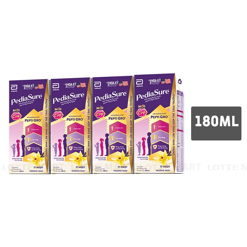Sữa nước Pediasure Vị Vani Lốc 4 Hộp 180ml là thực phẩm dinh dưỡng phù hợp cho trẻ trong giai đoạn 1 - 10 tuổi, các trường hợp tăng trưởng kém như nhẹ cân, thấp còi, suy dinh dưỡng, hay ốm, trẻ biếng ăn, có nhu cầu năng lượng tăng cao.